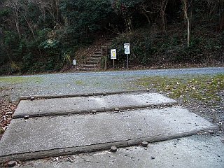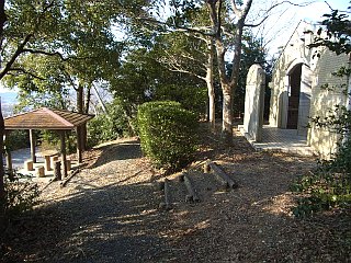 | 尾村山山頂から見る田原アルプス | 尾村山から下るとトイレと休憩所がある | 四季の森入口からまた山道へ |