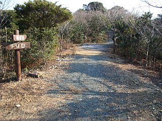 | 管理用道路を横断して山道を行く | 東山と尾村山の分岐 | 展望台のある東山山頂 |