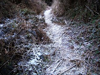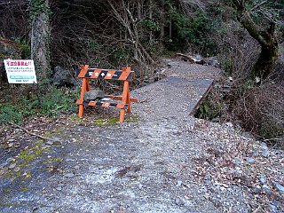 | 八十岡林道途中の駐車地点 | 八十岡林道終点の登山口 | 一日中霜が消えない登山道 |