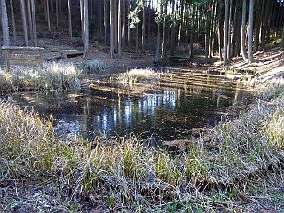 | 薄く氷の張る高山の池 | 中間展望台 | 中間展望台から駿河湾方面を見る |