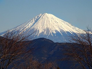 | 山行記 | ●寒く空気の澄む1月は、やはり富士山を見に行きたい。ということで、昨年3月に計画したものの、雨で中止になった静岡の牛ヶ峰へ行くことにした。 ●登山口の八十岡は、新東名高速道路が開通した今、新静岡ICからすぐの所にある。とは言っても、安倍川を渡るのに大きく下流へ回り込まなければいけないのは面倒だ。 ●登山口までの道は、舗装はされているが、落ち葉や落石で荒れた狭い道なので、今回は安全を見て、林道終点手前の駐車スペースに駐車して歩くことにした。 ●駐車スペースから舗装された林道を歩くが、傾斜もしだいに急になり、やがて木のトラ柵で車止めした終点に着く。ここにも駐車スペースがあり、数台は停めることができそうだ。 ●林道終点から鉄の橋を渡って山道に入る。すぐに一面に霜のある所が現れ、それを過ぎると左手に沢を見ながら歩くようになる。途中ロープの張られた足下の悪い所もあるが、慎重に通過する。 ●少し行くと渡渉点があり、そこで沢の対岸へ渡る。崩壊した道を通過すると、道はすぐに沢を離れ、急な斜面をジグザグに登るようになる。登り始めてすぐ、突然下方で落石の音がしたかと思うと、ニホンカモシカが一目散に逃げていくのが見えた。 ●急登はしばらく続くが、林相がよく整備された植林帯に入ると、傾斜もしだいに緩やかになり、内牧から来る道との合流点となる稜線に出る。 ●稜線の道は、これまでの道とはうって変わって傾斜も緩やかな道となり、稜線の右山腹を歩くようになる。道はことごとく稜線上を外して付けられており、不安定で歩きにくい箇所もある。 ●稜線は途中で、山頂へ直登する道と、高山の池を経由するコースに分かれるので、先に高山の池へ向かう。風もない陽だまりの平坦地を抜けて緩やかに登ると、薄い氷の張った高山の池に到着する。 ●池から山頂を目指す前に、中間展望台という案内があるので、そこへも寄っていくことにする。木の階段を登りきった所に立派な東屋があり、そこからは、静岡市内や駿河湾、伊豆半島などの大展望が広がるが、肝心の富士山が木の枝が邪魔でよく見えないのは残念だ。 ●中間展望台から一旦高山の池まで戻り、いよいよ牛ヶ峰の山頂へ向かう。意外に急なジグザグ道がしばらく続くが、車道にもなりそうな、広い緩やかな道を2度横切り、一登りすれば星型の展望台のある牛ヶ峰山頂に到着する。 ●事前の調べでは、山頂からの眺めは木々が邪魔して今一つということだったが、現在山頂の木々は伐採され、富士山から駿河湾にかけての大展望が広がっていた。 ●山頂には、三角点や東屋、トイレなどが整備されている。形よく聳える富士山はもちろん、隣の大棚山や龍爪山、真富士山などが間近に見られ、いつまで見ていても飽きることがない。 ●山頂の先にある小ピークへ行ってみる。草原になっているピークからは、また違った味の富士山の絶景を見ることができる。草地なので、寝転ぶと気持ちがよさそうだが、この時季は、土に露が浸みていてそれは出来ない。 ●山頂の展望を存分楽しんだ後、下山を開始する。下山は、高山の池に寄らず、山頂から直接下る。急なジグザグ道から始まる道は、中盤緩やかな山腹道に変わるが、最後は、痩せた急な尾根を下り先程の高山の池分岐に着く。 ●後は来た道を戻るが、登山口近くの霜は消えていない。おそらく一日陽の当たらないこの部分はしばらく凍ったままになるのだろう。車に戻ると、静岡の美肌の湯に寄って帰路に着いた。たまにはこのようなアプローチの短い山もいいもので、午後3時台には豊川に帰着することができた。 |