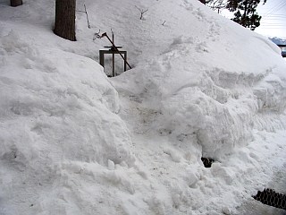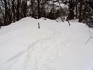 | 木からの落雪で埋まる登山道 | 飯森城址 | 一夜山山頂 |