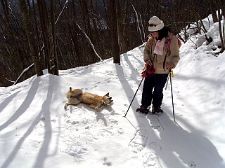 | 山大好きの犬の案内で訪れた雪と展望の里山 | ||