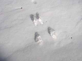 | 山の家 | 可愛らしい獣の足跡はまだ新しい | 下山途中で見た物置 |
