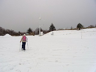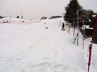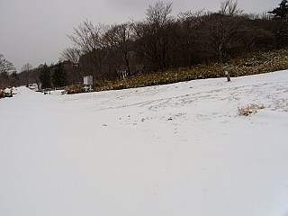 | ファミリーゲレンデを登る | 第二駐車場を横切って西登山ルート入口へ | 舗装道が見える辺りから斜面が増す |