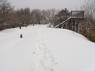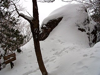 | 長野県側の展望台 | ほぼ雪に埋まった雷岩 | 森の広場方面分岐 |