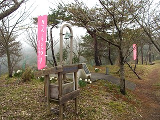 | 比丘尼駐車場と登山道入口 | 東屋 | 霧と桜がいい感じだ |