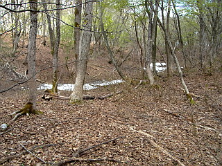 | 山行記 | ●4月の休日は雨の日が多く、加えていろいろな用事があって、なかなか山へ行く機会が無く、この月の山行はまだ3回目だ。今回の山行は、職場内のクラブの山行で、久しぶりに11名という大勢の参加となった。 ●かつては大垣インターからの市街地を通ってのアプローチだったこの辺りの山も、東海環状道の開通で、国道418号線に直接出ることができるようになり格段に近くなった。 ●登山口の駐車スペースにはすでに多くの車が停まっていたので、手前の路肩に車を停めたが、思っていたよりも車が少ないように感じたのは、イワザクラのシーズンとしてはすでに遅いのだろうか。 ●東コースが通行止めということなので、西コースに入る。林道を少し歩くと橋があり、それを渡ると山道になり沢沿いをしばらく歩く。道々にはキランソウやボタンネコノメ、チャルメルソウなどがぽつぽつと咲いている。 ●やがて、沢から離れると急な斜面をジグザグに登るようになる。しばらく登ると阿弥陀仏が現れるが、その後も急な登りは続く。ヒトリシズカやフデリンドウ、ヤマルリソウなど、花の山らしく花の種類はますます豊富になる。 ●植生はしだいに自然林が多くなり、青空の下新緑が眩しい。急な坂が落ち着くとなだらかな稜線に飛び出す。群生するバイケイソウとヤマタイミンガサの新緑が美しい明るい稜線からは、樹間にいまだ白い雪を纏う能郷白山の雄姿を見ることができる。 ●少し登ったところが小舟伏山と名付けられた973mのピークで、この辺りからカタクリの花が見られるようになる。ここまで来れば舟伏山も近く、小舟伏山から少し下り、最後の登りを登り切れば、木々が伐採されて開けた舟伏山山頂に到着する。 ●山頂には三角点があり、あちらこちらにカタクリの花が咲いている。絶好の天気で暑いので、やや日陰になったところで休憩をする。 ●山頂でしばらく過ごした後、下山にかかる。東コースは通行止めとのことだが、せっかくなのでイワザクラを見ていこうと東コースを下ることにした。 ●山頂の平坦な道は、やがて急降下を始める。しばらく下りたところに岩場があるが、そこがイワザクラの自生地だ。やはり4月の初旬からネットで紹介されていただけあって、そろそろ終わりといった感じで花に精彩はなかった。 ●イワザクラのポイントからも急な下りは続き、やがてみのわ平という平坦地に着く。しばらく続く平坦な道は、再び急な下りにかわり、それを下りきると桜峠に着く。 ●桜峠からは、そのまま通行止めになっている東コースへ行くのか、それを避けてあいの森入口まで行き、3km程林道を戻るかの選択になるが、他のパーティーが全て東コースを選んでいるので、こちらもそれにつられて東コースへ進むことにした。 ●少し登り返し、通行止めのテープを潜って東コースへ進む。植林の多い尾根道を歩いていくと、「山頂まで3.1km」という案内があるが、その先が伐採で開け下に林道と沢が見える。どうやらここが通行止めの伐採地ということらしい。 ●周りが開け、高度感のある急な下りは、乾燥して滑りやすい不安定な道で、慎重に下る。途中道が不明瞭な部分もあるが、先まで見えているので迷うことはない。斜面を下りきると倒木が放置された沢筋を何とか渡り、対岸の道を下ると林道に出る。 ●林道を歩くと間もなくゲートが見えてくるが、そこが東コース入口で、ゲートを越えればすぐに朝車を置いた駐車スペースに着く。 |