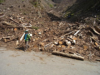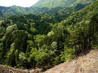 | 伐採地が現れる | 新緑が眩しい | 東コース登山口 |