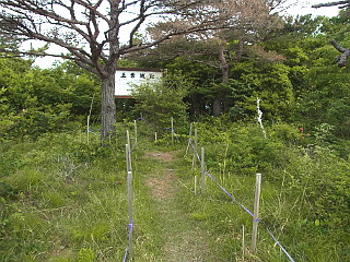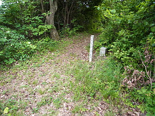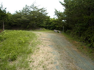 | 五葉山山頂 | 林道が見える | 五葉城址入口にはベンチがある |