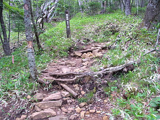 | 行程 | 駐車場(5:45)・・・アポイ岳登山口(5:51)・・・一合目(5:59)・・・第2休憩所(6:22)・・・二合目(6:24)・・・第3休憩所(6:30)・・・第4休憩所(6:38)・・・三合目(6:43)・・・林道出合(6:53)・・・第5休憩所(6:57)・・・四合目(7:01)・・・五合目(7:10)・・・六合目(7:28)・・・七合目(7:39)・・・馬の背(7:47-54)・・・幌満お花畑分岐(8:07)・・・八合目(8:12)・・・アポイ岳(8:34-50)・・・雨生山反射板(11:30)・・・林道出合(11:45)・・・67鉄塔入口(11:59)・・・おすすめの小径出口(12:09)・・・アポイ岳登山口(12:17) | |