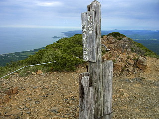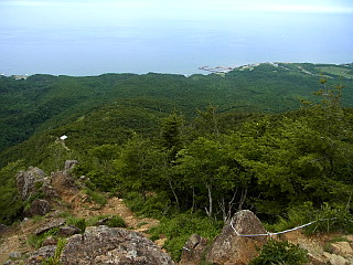 | 登りの途中で見る避難小屋と太平洋 | 様似の街を見下ろす | 七合目 |