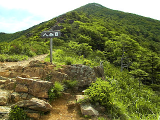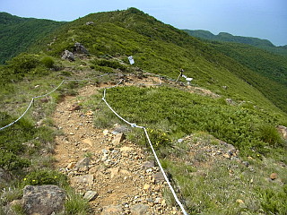 | 五合目にある避難小屋 | 五合目から見るアポイ岳の山頂部 | 六合目 |