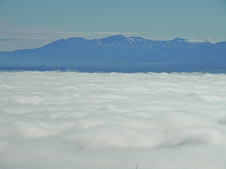 | 山行記 | ●昨日アポイ岳に登った後、襟裳岬を観光し、帯広に宿泊。翌早朝に帯広を出て芦別岳登山口のある富良野を目指す。芦別岳の新道登山口で、富良野観光組と別れて芦別岳を目指す。 ●登山口のポストで記名した後、獣除けの柵を開けて登山道に入る。いきなり急な登りから始まるが、尾根上に出るといくらか緩くなり、変化の無い薄暗い樹林の中をひたすら登っていく。足元には、ツクバネソウやジンヨウイチヤクソウ、ギンリョウソウ、エゾノヨツバムグラなど、目立たないものが多いが意外に花は豊富だ。 ●やがて後方に視界が開けるが、そこが見晴台と呼ばれるところで、雲海の向こうに大雪連峰や十勝連峰がずらりと並ぶ。これまで展望もない尾根道を登ってきたので、いきなりの素晴らしい絶景に息をのむ。 ●展望台から少しは坂も緩むが、徐々に登りが急になってくる。時折、大雪連峰や十勝連峰への展望も開け、タニウツギやハクサンチドリ、ムカゴトラノオなど植物の種類は多くなる。 ●ジグザグの急坂を登り切るとユーフレ小屋方面への道を分ける鶯谷と呼ばれる分岐に着く。鶯谷からわずかに下り、再び尾根上の急坂が始まる。ダケカンバの白い樹皮と青空が眩しい。ウコンウツギやコケモモ、コバイケイソウ、ゴゼンタチバナ、ウサギギクなど、植生は中部地方でいえば既に亜高山から高山帯だ。次のピークが半面山。ここまで来ると、雲峰山に後ろに目的の芦別岳が見えるようになる。 ●半面山からは、一旦下り、ミズバショウの咲き終わった湿原を抜けて、ジグザグの急登を登り返す。森林限界も越え、シナノキンバイやキバナノコマノツメ、シラネアオイ、チングルマ、ミツバオウレンなど、高山植物の世界だ。後方には富良野の田園風景が広がり、その背後には大雪・十勝連峰が連なっている。そんな眺めに励まされながら急坂を登り詰めると雲峰山に到着する。 ●雲峰山には山名表示がないが、眼前に屹立する芦別岳の雄姿が素晴らしい。雲峰山から少し下り、なだらかに登った後、芦別岳へのジグザグの登りをひたすら登る。ジグザグ道の山頂直下は高山植物のお花畑で、特にミヤマキンバイ、シナノキンバイ、ミヤマキンポウゲ、ミヤマダイコンソウ、ケエゾキスミレ、ミヤマタンポポなど、黄色い花のオンパレードだ。 ●ジグザグ道は、しだいに急な岩場の登りになり、やがて芦別岳の山頂に到着する。意外に狭い芦別岳山頂からは、少し雲が目立ち始めたものの360度の展望が広がる。隣の夕張岳は最後まで雲に覆われ山頂部を見ることができなかったが、大雪・十勝の峰々、富良野の田園風景などの展望が広がっていた。 ●しばらく山頂からの展望と高山植物を楽しんだ後、来た道を戻る。帰路にも、往きには気付かなかった花を多数発見することができた。改めて北海道の山の良さを実感しながら登山口を目指した。 |
