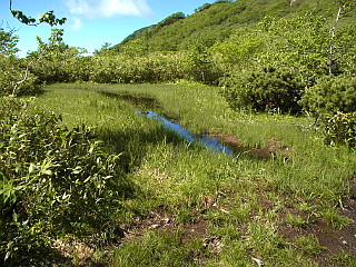 | 湿地を通り雲峰山を目指す | 雲峰山山頂 | 雲峰山山頂から見る芦別岳 |