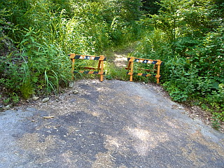 | 最初の舗装道出合 | 二回目の舗装道出合から未舗装道に入る | 未舗装道から山頂への近道 |