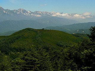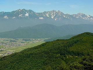 | 鷹狩山山頂から見る後立山連峰 | ||