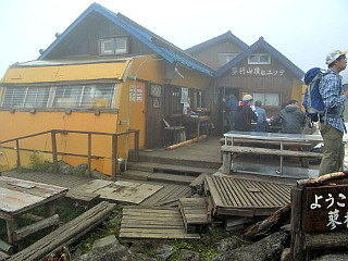 | 将軍平に建つ蓼科山荘 | 蓼科山山頂の一角に建つ蓼科山頂ヒュッテ | バッジの無人販売 |