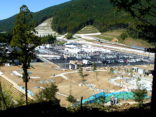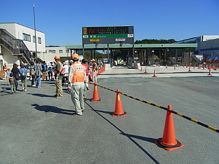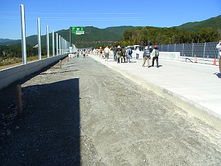 | 山行記 | ●完成前の新東名高速道路を歩くという、新東名ウォーキングに参加した。混み合うのは予想できたので、少し早めに出たのだが、駐車場への道路は既に大渋滞。駐車しようと思っていた三菱電機の駐車場が目の前で満車になったので、その先の有海緑地公園に駐車して歩き始める。 ●要所要所に案内人の立つ順路に従って新城ICの料金所に出ると、完成前の料金所前で記念写真を撮る大勢の人たちでごった返していた。ここからは、シャトルバスで長篠設楽原PAまで行くこともできるが、ここは当然歩いて3.5km先のPAへ向かう。 ●導入路はまだ舗装されておらず、本線もコンクリートのままで、まだその上の舗装はされていなかった。この日は天気も良く、本宮山を始めとして、2本のアンテナの立つ城山や風切山、船着山、吉祥山、鳳来寺山などの三河の山々が見える。 ●ウォーキングスタイルから日常着など様々な格好をした群衆に紛れて歩き、中間地点の連吾川のスタンプラリーチェックポイントを過ぎると、すぐに長篠設楽原PAまで1.5kmの高速道路用の看板が見えてくる。 ●コンクリートの照り返しが眩しい高速道路上をさらに歩いていくと、長篠設楽原PAの入口が見えてくる。高速道路の本線上を歩くのもここまでで、PAへの進入路からPAへ入って行く。 ●完成間近の長篠設楽原PAには、イベントのための沢山のテントが張られ、その中では沿線各自治体の観光のアピールや地元グルメの店が設けられていた。また、一画ではイベント開始のセレモニーが始まったところだ。 ●後で聞いた話だが、このイベントには3万人の人出があったそうで、豊橋カレーうどんや五平餅、いなりずしなどを売る店は長蛇の列。豊橋カレーうどんなどは昼を待たずに完売状態だった。 ●PAで少し過ごした後、PAの隣にある山が気になったので登ってみることにする。そこへは、PAからの遊歩道を整備中で、その頂上までは5分とかからない。 ●頂上には稲荷神社が祀られ、戦国時代に織田信長が本陣を置いたとされる説明看板と織田信長の歌碑などがある。どうやらここは茶臼山という山であることが初めてわかった。 ●茶臼山というと、普通ならスキー場のある、愛知県最高峰の茶臼山を思い浮かべる。しかし、飯田線の新城駅の先に茶臼山という駅名があるのに昔から違和感を感じていたが、この駅名がこの茶臼山に因んだものだということをここで初めて知った。 ●茶臼山山頂では、イベントに合わせて、この山の歴史についての解説員が数人配置されており、PAから登って来るイベント参加者に対して、この山の歴史について解説をしたり、質問に答えていた。 ●茶臼山からPAに戻るが、あまりにも人が多く、食べ物を買うにしてもそれを待つ人の列が長く、休憩所の席も空いていないので、そこそこにして新城ICへ、クラブツーリズムがチャーターしたバスを何十台も行くのを見ながら来た道を戻った。 |