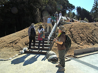 | 長篠設楽PAから見る吉祥山 | 整備が進む茶臼山への遊歩道 | 遊歩道から見る本線を歩く人の列 |
