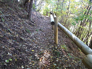 | 1回目の舗装道出合 | 2回目の舗装道出合から山道へ | 3回目の舗装道出合から立派な手摺が付く |