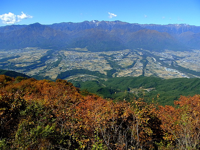 | 紅葉はまだだが中央、南の両アルプスの展望を満喫した伊那谷の展望峰 | ||