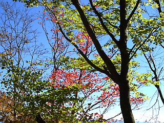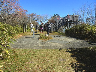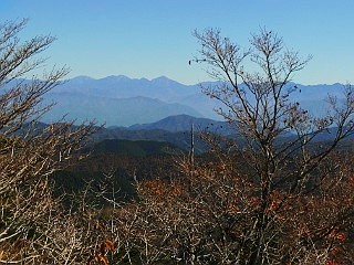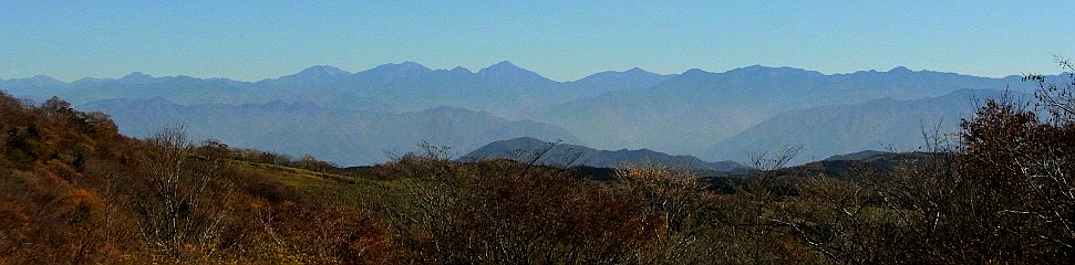 | 山行記 | ●茶臼山高原で開かれる、「第1回三遠南信食の祭典in茶臼山高原」に出かけたが、せっかくなので、茶臼山へも登っておこうと山の準備もして豊川を出た。思っていたよりも時間が遅れたおかげで、下の第1駐車場は既に満杯。結局上の第2駐車場へ誘導された。そこはまだ空いていたが、次々と車が来るので、すぐにここも満車になるだろう。 ●しかし、茶臼山へ登るにはここが一番近いので、まずは駐車場横の西登山口から茶臼山を目指す。やはり、同じことを考える人が多いのか、家族連れやカップルなどが次々と登山口から登っていく。この日は天気も良く、南アルプスの眺めがいいが、紅葉は終わった感じで、葉を落とし切った落葉樹が目立つ。 ●人工的に植えられたような木が並ぶ緩やかな登山道は、左手に舗装道が見える辺りから急になり、それを登り切ると、自由の丘と書かれたベンチやテーブルなどのある広場に着く。広場からは、南アルプスの間ノ岳以南の山々がずらりと一望できる。 ●広場の先が茶臼山の登山口で、ここから本格的な山道が始まる。登山口に杖を立てる木の箱があり、いつもは木の杖が沢山入れてあるのだが、この日は1本しか残っていなかった。 ●すぐに展望台が現れるが、以前登った時、木々が邪魔をしてすっきりとした展望が得られなかったので、今回はそこへ寄らずに急な坂道を登る。すぐに道は右へ曲がり、緩やかな山腹道を歩くようになる。 ●さらに進むと、休暇村から来た道と合流し、すぐに「長野県側」と案内のある、雷岩方面へ続くルートを分け、急な木の階段を登り始める。 ●道は木のところどころ階段のある急坂を九十九に登るようになり、それを登り切ると周囲が開け、山頂一角の稜線に出る。稜線からは、葉を落とした木々の間から、紅葉に染まる向かいの萩太郎山や奥三河の山々を見ることができる。 ●三角点のある山頂は、そこから少し平坦な道を歩いたところにある。山頂には、コンクリートの擬木でできた大きな展望台があるが、先行の家族連れや老カップルなどでいっぱいだった。 ●展望台で少し過ごした後、恵那山やアルプスなどを見ることができる長野県側の鉄製展望台へも寄っていくことにした。それは稜線を緩やかに下った先にあるのだが、老朽化が激しく危険だということで、残念ながら登ることができなかった。しかし、木々の枝の間から、恵那山や大川入山、蛇峠山、中央アルプスなどは確認することができた。 ●下山は、このまま雷岩方面へ下る。急でジグザグな道を下っていくと、雷岩と呼ばれる大岩が見えてくる。そこで道が分岐するので、雷岩の手前から右へ続く山腹道へ進む。 ●すぐに道は分岐するが、そこは右に登る方向に進む。やがて山腹道は、往きに分岐した「長野県側」と案内のある分岐に着くので、そこからは来た道を戻ることになる。 ●車を置いた第2駐車場に着くと、要らないものをデポし、車は置いたままイベント会場へ下る。会場にはステージやテントが設営されており、開会行事が既に始まっていた。 ●会場は、多くの人で混雑しており、食品を提供するブースは大行列、イートスペースもなかなか空かないという状態だったが、何とか並んで食べることができた。イベントを楽しんだ後、登り返して第2駐車場においてある車まで戻り、帰路に着いた。 |