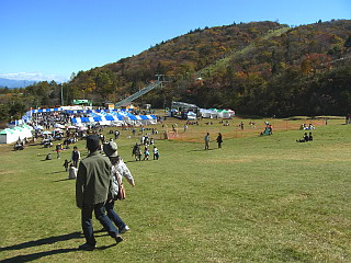 | 「第1回三遠南信食の祭典in茶臼山高原」で賑う茶臼山高原と展望の茶臼山 | ||
