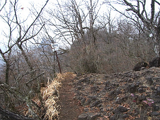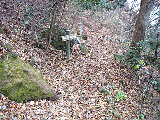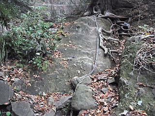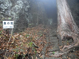 | 第一展望台方面への分岐となる「辻」 | 奥の院入口 | 奥の院横の鎖場はほぼ垂直に登る |