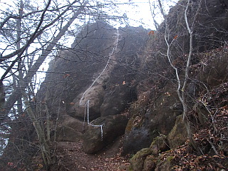 | 妙義神社脇の妙義山登山口は現在工事中 | 最初の鎖場 | 大の字基部 |
