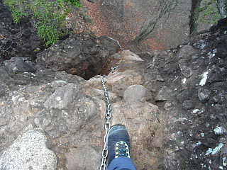 | 大の字へ登る鎖 | 大の字山頂 | 大の字から下を見下ろす |