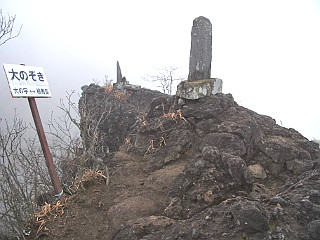 | 御嶽三社が祀られる「大のぞき」 | 「大のぞき」から見る金鶏山 | 「大のぞき」から見る天狗岳 |