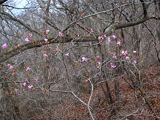 | 相馬岳山頂 | 相馬岳山頂から見る金洞山 | 相馬岳からの下り坂で狂い咲くツツジ |