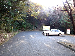 | 第一駐車場と登山道入口 | ドウダントンネルコースと展望コースの分岐 | 紅葉の山肌がいい感じだ |