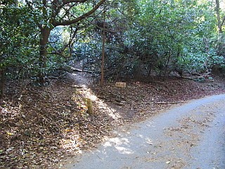 | 名電長沢駅方面下降点 | ガードレールのある舗装道と合流 | 山道入口だが舗装道でも同じところに出る |