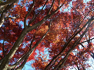 | 山行記 | ●コアブラツツジの紅葉で有名な宮路山。天気も良さそうなので、紅葉祭りも先月で終わったこの時季だが、まだ見ることができるのではないかと行ってみることにした。 ●いつもより少し遅い時間になったので既に賑やかなのではないかと心配したが、さすがに紅葉祭りも終わったばかりなので第一駐車場はまだ空きが多く、楽々車を停めて出発する。 ●ここのところ暖かい日が続いていたが、この日は寒気が入ってようやく平年並みの気温に戻った。冷たい風も吹き、暖かさに慣れた体には少々きついほどの寒さだ。 ●二度の森林コースとの分岐を分けて、ドウダントンネルコース、展望コース分岐に着くと、コアブラツツジやカエデはまだ葉が残り、まだまだ鮮やかな紅葉の山肌を見ることができた。 ●ドウダントンネルコースの急なジグザグの斜面には、コアブラツツジの紅葉が朝の光を透過し、美しく光っているようだ。しかし、登るにつれ見えてくるはずの御岳などの遠くの山々は、残念ながら霞んで見ることができなかった。 ●ジグザグを登り切ると五井山方面との分岐があり、それを過ぎるとすぐに宮路山山頂に着く。宮路山頂は展望が自慢というだけあって、三河湾や豊橋平野、渥美半島の山々や湖西連峰などが一望できる。 ●宮路山頂からは先程の分岐まで戻り、今度は五井山方面への稜線を進む。緩やかに下り、平坦なアップダウンを歩いていくと、「五井山まで3.1km50分」という標識が現れる。 ●標識から稜線の北側を歩くようになり、大きく左に回り込んでいくと掘割状の急坂を登るようになる。登りが一段落すると今度は稜線の南側を歩くようになり、緩やかに登り始める。 ●途中、倒れてしまった「五井山まで2.3km35分」の標識を見ると、間もなく高い通信鉄塔が見えてくる。しばらく、鉄塔に通じる舗装道と並行して進むが、いつの間にかその舗装道が見えなくなると、簡単なベンチのある展望所が現れる。 ●展望所といっても今は手前の木々が伸びてすっきりとした展望は得ることができない。展望所を過ぎると木の階段のやや急な下り坂となり、すぐに「五井山まで1.5km25分」という標識が現れる。 ●標識からは緩いアップダウンのある平坦な道が続くが、名電長沢駅方面の下降点を分けると木の階段のある登りを繰り返す。やがて急な階段が現れ、それを登り切るとガードレールのある舗装道に飛び出す。 ●少し舗装道を歩くと、対岸の山道の入口があるが、山道を行っても舗装道をそのままいっても結局同じところに出る。せっかくなので往きは山道を行くことにするが、山道はピークを乗り越して再び先程の舗装道と合流する。 ●合流点からは、再び舗装道を歩いて、そこからも見えている五井山への案内標識に従って山道に入る。アオキの赤い実が目立つ狭い登山道は意外と短く、呆気なく南に大きく展望が開ける五井山山頂に立つことができる。 ●五井山山頂からは、蒲郡市内や三河湾、渥美半島などを見渡すことができる。また、山頂広場の中央部分を囲っているフェンスを回り込めば、本宮山などの三河の山々や、この日は見ることができなかったが、遠く御岳なども見ることができる。 ●五井山山頂は冷たい風が吹いているものの、風の当たらないところは暖かく、これまでの、風の吹く樹林帯の中の寒さとは打って変わって過ごしやすい。 ●暖かい五井山山頂で少し過ごした後、来た道を戻る。この日は、スタートが少し遅いように感じていたが、日の出が最も遅くなるというこの時季、遅いわけではなかったらしく、帰りには多くの登山者とすれ違った。 |