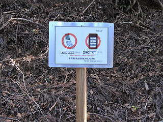 | 携帯の受信状況と距離の書かれた案内坂 | 馬の背平 | 落ち葉の積もる林道 |