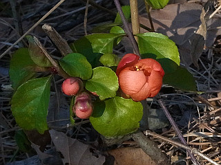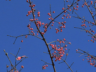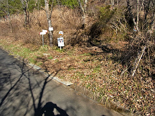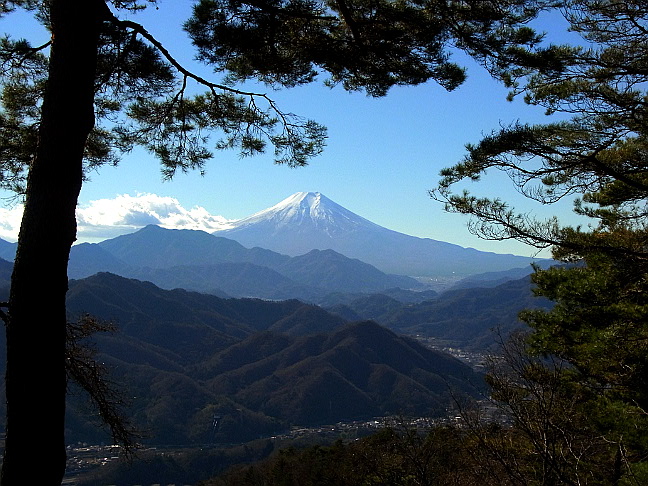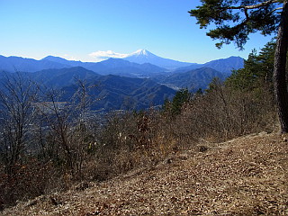 | 山行記 | ●ようやく冬らしい寒さとなったこの日、富士の展望を期待して山梨県大月市の秀麗富士12景にも数えられるこの山へ行ってみることにした。現地は氷点下の気温の予想だが、前週にスタッドレスタイヤを履いたばかりなので準備は万端だ。 ●新東名高速道路からも富士山が良く見え、雲一つないこの天気が一日持つことを祈りながら登山口の大月市運動公園駐車場を目指す。道路は凍結したところも無く駐車場に到着すると、これから登る百蔵山や富士山、三ツ峠山なども見えいい感じだ。 ●駐車場では、既に車で来たりバスで来たグループや、駅から歩いてきただろうグループなどが次々と登っていく。こちらも早速支度をして歩き始める。急な舗装道はすぐ上のY字路で左へ進み、続いて右方向へ進む。舗装道の傾斜はさらに増し、登山道を歩くのと変わらない。少し進むと、左方向に「百蔵山」、まっすぐ方向に「百蔵山 扇山」とそれぞれ書かれた指導標が現れるので、ここはトイレ有とある直進方向に進むことにする。 ●すぐにターゲットバードゴルフ場が現れ道の向かいの広場に百蔵山登山口公衆便所とある小さながある。そこでトイレ休憩をした後さらに進むと浄水場を巻くように高度を稼ぐ。背後には雪を頂いた富士が、三ツ峠山などの甲州の山々の背後に聳えている。 ●浄水場の先で道はまっすぐ方向の東ルートと右方向の西ルートに分岐するので、ここは東ルートを進むことにして右の山道へ入る。明るく気持ちのいい冬枯れの雑木林はいつの間にか、やや暗い掘割状のジグザグ道に変わる。 ●再び明るい雑木林に変わると、道は指導標に従って尾根へ登る。尾根上に出るとその尾根を九十九に登り始める。急な尾根道はさらに急になり、ロープが張られた、落ち葉で滑りやすい急傾斜の道を、ずり落ちないように足場を確保しながらひたすら登るようになる。 ●意外と長かった急傾斜の道が落ち着くと、扇山から来る道と合流する。そこからは平坦な道へと変わり、程なく三角点や山梨百名山の木柱などがある百蔵山の山頂に到着する。 ●百蔵山山頂は広場になっていて、富士山や大月市街などの展望が広がる。山頂では既に多くのグループが休憩をしており、日も当たって少し風があるものの、来る前に心配した程寒くない。 ●富士山の絶景はいくら見ていても飽きないが、じっとしているとさすがに寒くなってきたので、下山を始めることにした。下山は西ルートを下ることにした。西ルートは東ルートとは打って変わって緩やかで、林相もアカマツ中心で東ルートの雑木林とは全く違って面白い。 ●しばらく歩きやすい道を気持ちよく下っていくと、福泉寺と西ルートとの分岐に出るので、尾根を外れて西ルートを下る。東ルートと比べて緩やかで歩きやすいジグザグ道を気持ちよく下っていくと、ベンチのある展望所に着く。 ●展望所からの展望はなかなかのもので、足元には大月市街とそれを貫く中央自動車道、その背後には甲州の山々、その後ろには、東に雲を棚引かせた富士山の雄姿を望む頃ができた。また、ここは暖かいのか、季節外れのクサボケが咲いていた。 ●さらに下っていくと登山ポストが立てられており、そこで道が二分する。左の道を上がるとすぐに駐車場が現れるが、そこが西ルートへの登山口となっているらしく、数台の車が停まっていた。 ●駐車場の近くには大山砥神社が祀られており、それを過ぎて駐車場へ続く車道を進む。道は何時しか舗装道に変わり、駐車場を行き来する車も行き交うので注意しながら歩いていく。 ●やがて、往きに分岐した東ルート・西ルートの分岐に出るので、後は急な舗装道を歩いて車へ戻る。帰りは行く手に富士山が見えるのでいい感じだ。車に戻ると、この天気なので、富士山を見ながらお湯に浸かることができる山中湖の紅富士の湯へ寄って頃に付いた。帰路も富士山を始めとする山々がくっきりと見え、この日は至福の一日となった。 |