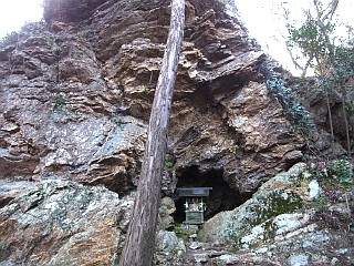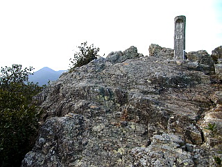 | 大岩に埋め込まれた148.1m三角点 | くちなし平と大山 | 雨乞山直下にある雨乞神社 |