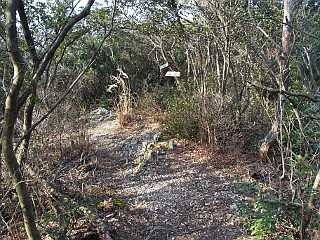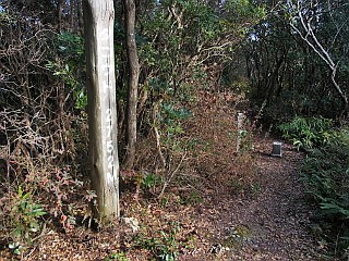 | 見晴し岩から見る福江の街と三河湾 | 「泉福寺東屋跡」分岐から平坦な道を歩く | 笑之介平分岐 |