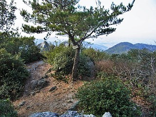| 山行記 | ●この日も天気が良さそうなので、富士山の見える近隣の山ということで、前日からいろいろ迷った挙句、この山に登ることにした。この山は、以前2度ほど登ったことがあったが、今回はまた違うコースで歩いてみることにした。 ●まずは、下山予定の泉福寺駐車場に車を置き、約4.5km離れた福江バス停を目指す。7時48分に出発し、次のバスは8時39分発。何とか間に合わせようと必死に歩き、バス停に着くとすぐにバスが来るというタイミングで何とか間に合った。 ●バスに乗ってから気づいたのだが、最寄りのバス停がガイドブックにあった福江バス停であると思い込んでいたのだが、実際は次の古田坂上というバス停の方が近く、こちらを利用した方がもう少し余裕があったようだ。 ●石神バス停でバスを降りると、雨乞山登山口の貯水池を目指すが、そこまでも1km以上歩くことになる。正月の朝ということで静かな住宅地を抜けて、雨乞山を見ながら歩いていくが、今度は時間に追われていないのでのんびりとしていい。 ●貯水池に着くと、その奥にある登山口から登り始める。最初はロープの張られた急坂をずり落ちないように必死に登る。すぐに揚水施設が見えるが、その辺りから尾根上の登りになり、少し傾斜は緩くなる。 ●落葉樹が葉を落とした尾根道は明るくて気持ちがいい。足元にはコシダやヒトツバなどが多く、暖地の山らしい。大岩が現れ始めると展望が開け、三河湾や大山などの周囲の山々が見えてくるが、目当ての富士山は、気温が高いからか、残念ながら霞んでいて見えず、本宮山などの三河の山々ですらはっきりとしないぐらいだ。 ●大岩に埋め込まれた148.1m三角点まで来ると雨乞山の山頂が見えてくる。その先、くちなし平を過ぎると雨乞神社の案内が現れる。正月なので道からそれて雨乞神社にお参りをしてから、すぐ上にある、大岩が積み重なる雨乞山の山頂に立つ。 ●山頂からの展望はすこぶるよいが、富士山や御岳、南アルプスなどの遠くの山々が見えないのは残念だ。山頂付近ではモチツツジが咲いているのをよく見かけるが、これだけまとまって咲いているのを見ることは無く、やはり暖冬の影響なのだろうか。 ●雨乞山から急な坂を下り鞍部まで下ると、今度は物見山への登りが始まる。三角錐に形良く見える物見山だが、思った程きつい登りではなく、しかも短く感じる程だ。 ●物見山山頂も大岩の積み重なる山頂で、雨乞山よりもさらに展望がいい。冬らしくもう少し空気が澄んでいれば、富士山や御岳などまでくっきりと見ることができただろうと思うと重ね重ね残念だ。 ●物見山からは、それほど下ることも無く、椛峠への下降点を見送り、弁当岩を過ぎると、いつの間にか三角点のあるタコウドに着く。このコース最高点のタコウドは、予想に反して展望も無く、三角点が無ければ気が付かないような地味な山頂だ。 ●タコウドから緩やかに下っていくと、「高木バス停」と書かれた分岐が現れ、別の看板には、「景観最高げんこつ岩5分」と書いてあるので、余程展望のいい露岩があるのだろうと期待してそこへ寄っていくことにした。 ●平坦な道はしだいに下りに変わり、どうしようかと思ったがとにかく行ってみようと下っていくと、げんこつ岩と書かれた看板があり、その後ろにげんこつのような丸い岩があったが、それは樹林に囲まれているので展望がいいわけでもなく、がっかりして引き返す。 ●分岐まで戻ると先へ進む。緩やかに下り、緩やかに少し登ると見晴し岩に出る。ここも展望の開ける所で、渥美半島最高峰の大山などが大きく見えた。 ●見晴し岩から急な下り坂を下ると、「泉福寺東屋跡」という看板のある分岐に出るが、そこからは、それと反対方向の泉福寺方面へ平坦な道を進む。平坦だが枯れ枝や落石で荒れた道は歩きにくい。 ●やがて、道は笑之介平分岐に出るので、泉福寺方面に続く道を下る。道はこれまでと同じように広くて緩やかだが、やはり、木の枝や石、イノシシの掘り返した後などが多く歩きにくい。 ●意外に長く感じる下り道は、急に行く先が明るくなり、先程車を置いた泉福寺の駐車場に飛び出す。駐車場には、なんと観光バスが駐車しており、観光客がぞろぞろと降りてきた。外に乗用車などは1台も止まっていなかったので、なんだか異様な感じだ。 ●バスの表示には、「東海の七福神めぐり」と書いてあったので、旅行者が企画した定期観光バスなのだろう。そんなことで、少しこのお寺にも興味がわいたので、観光客に紛れて泉福寺を見てから帰路に着いた。 |