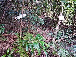 | 行程 | 泉福寺駐車場(7:48)・・・福江バス停(8:37-39)━━石神バス停(8:45)・・・貯水池(9:02-06)・・・貯水池上部施設(9:10)・・・148.1m三角点(9:24)・・・くちなし台(9:30)・・・雨乞神社(9:35)・・・雨乞山(9:40-51)・・・爺々岩(9:57)・・・物見山(ミハリ山/10:13-16)・・・タコウド分岐(10:24)・・・弁当岩(10:26)・・・タコウド(10:31)・・・高木バス停分岐(10:33)・・・げんこつ岩(10:39)・・・高木バス停分岐(10:46)・・・見晴し岩(10:52)・・・笑之介平分岐(11:07)・・・泉福寺駐車場(11:13) | |