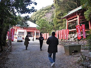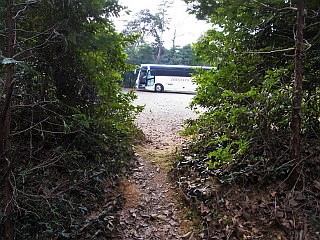 | 緩やかだが石や枯れ枝で歩きにくい道 | 観光バスの停まる泉福寺駐車場に到着 | 泉福寺 |