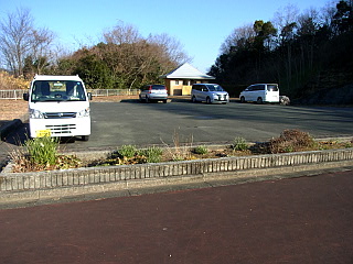 | トイレのある大原調整池駐車場 | 遊歩道入口 | 送電線鉄塔下から見る吉祥山と本宮山 |