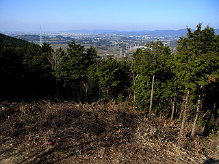 | 展望台から見る豊川市街地と宮路山地 | 展望台から見る吉祥山と本宮山 | 観察の小径を見送ると急な山道になる |