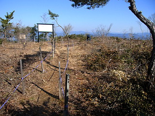 | 五葉城祉入口 | 規定に木々が刈り掃われた五葉城祉 | 五葉城祉から見る南アルプス |