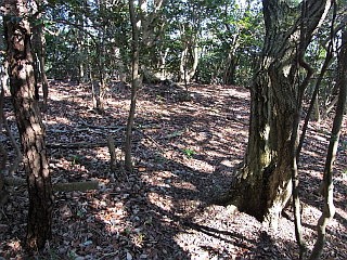 | 五葉城祉から見る本宮山 | 木々に囲まれ展望の無い出丸山頂 | 五葉の五滝下降点 |