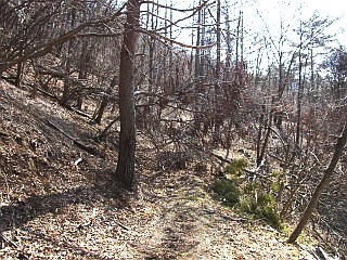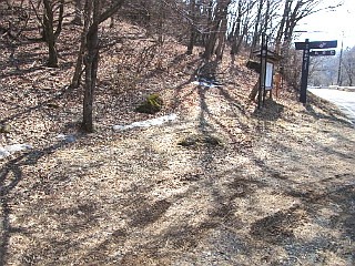 | 仏岩登山口と駐車スペース | 倒木が道を塞ぐ | 休憩所分岐 |