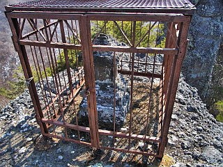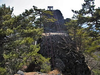 | 鎖のある大岩の間を登る | 山頂へ続く細い梯子 | 山頂から振り返る |