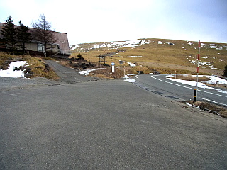 | 車山肩駐車場と車山 | 道の部分だけ雪が残る | 折り返し点から見る蓼科山 |